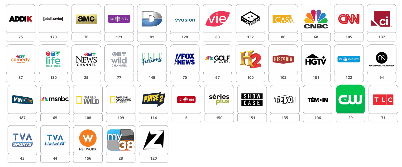 Bonifiez votre forfait de base et optez pour le forfait Plus ( 52.50$ - le forfait Plus inclut les chaînes du forfait de base )