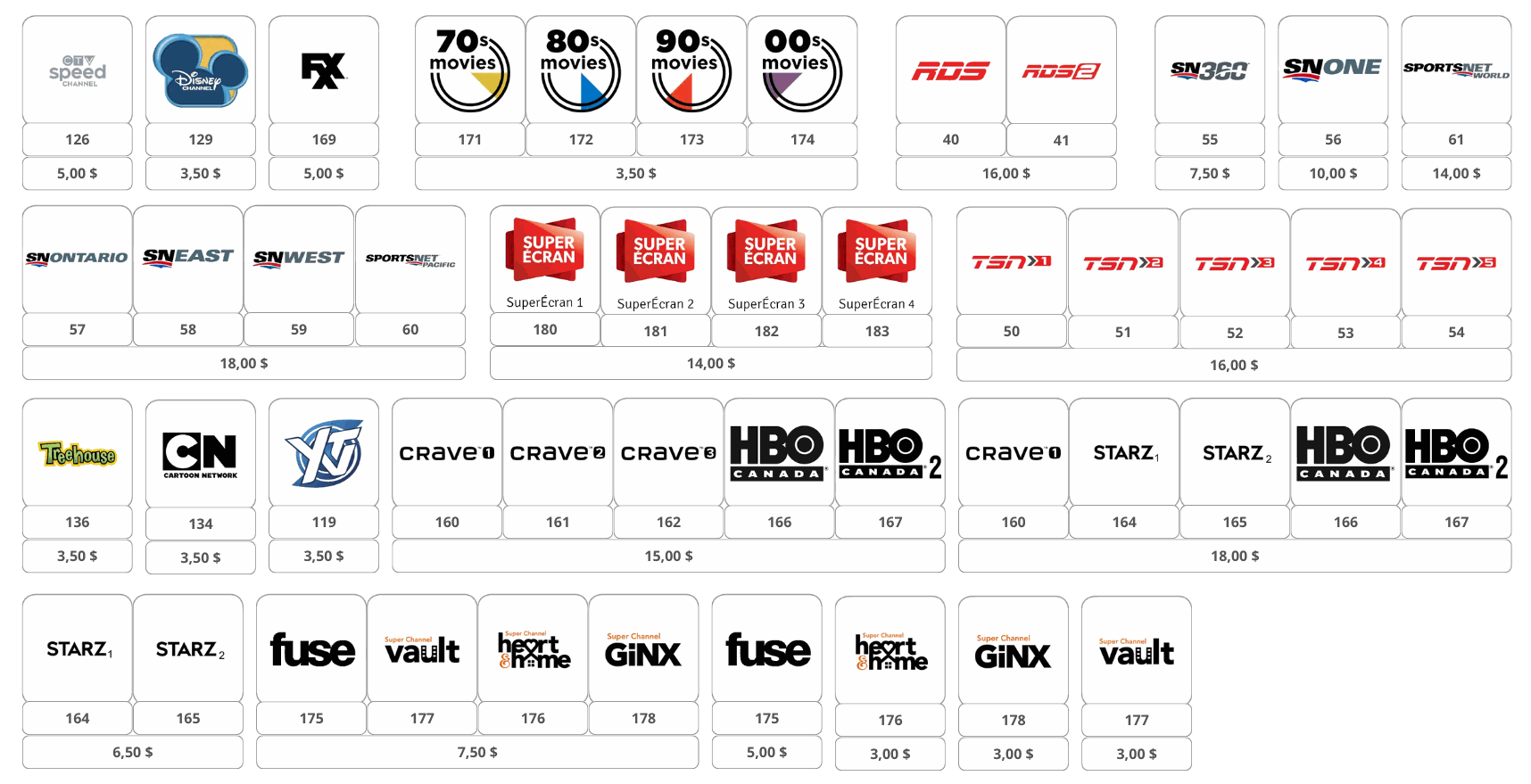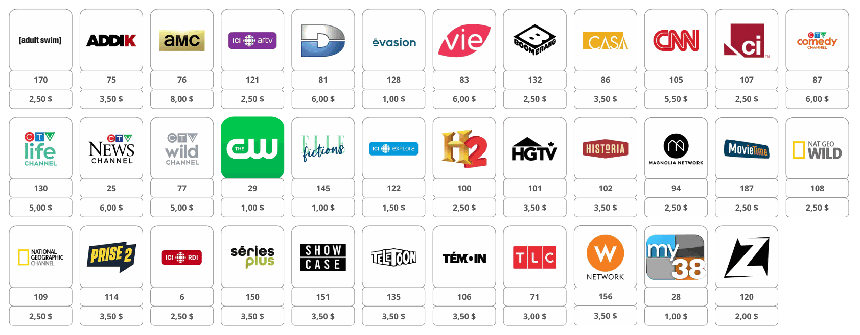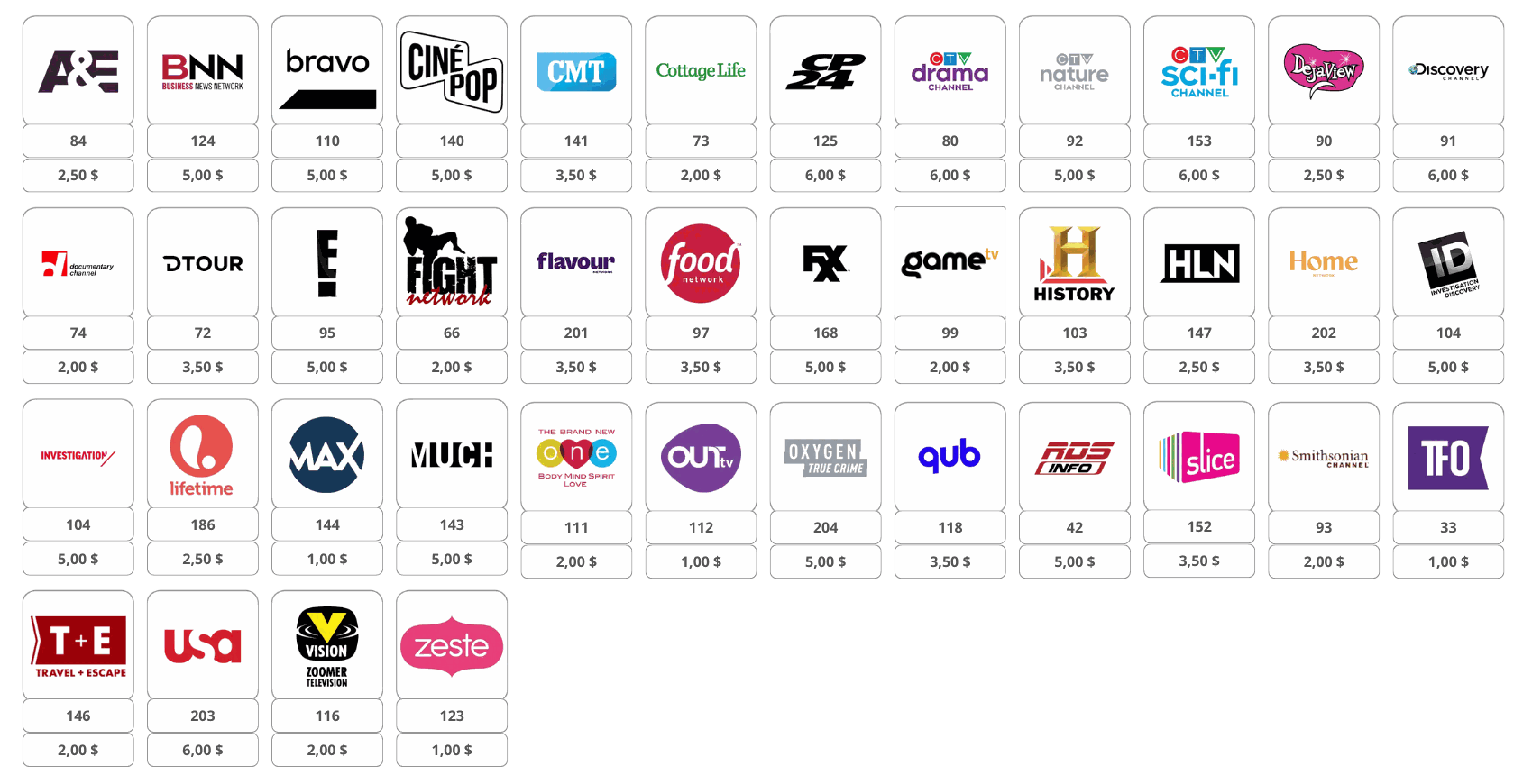 Package 5 channel: 12,50 $